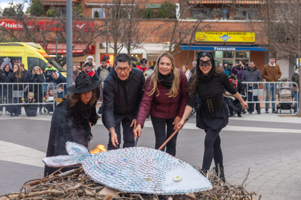 Por la tarde, el cortejo fúnebre partió desde la Glorieta del Manzanares y recorrió la Avenida de Colmenar Viejo, acompañado por una divertida charanga plañidera hasta la Plaza de Antonio Gala, donde se procedió a la tradicional Quema de la Sardina. La comitiva concluyó con una queimada –a cargo del Centro Gallego de Tres Cantos– y con la también tradicional sardinada popular, de la que pudieron disfrutar todos los asistentes.