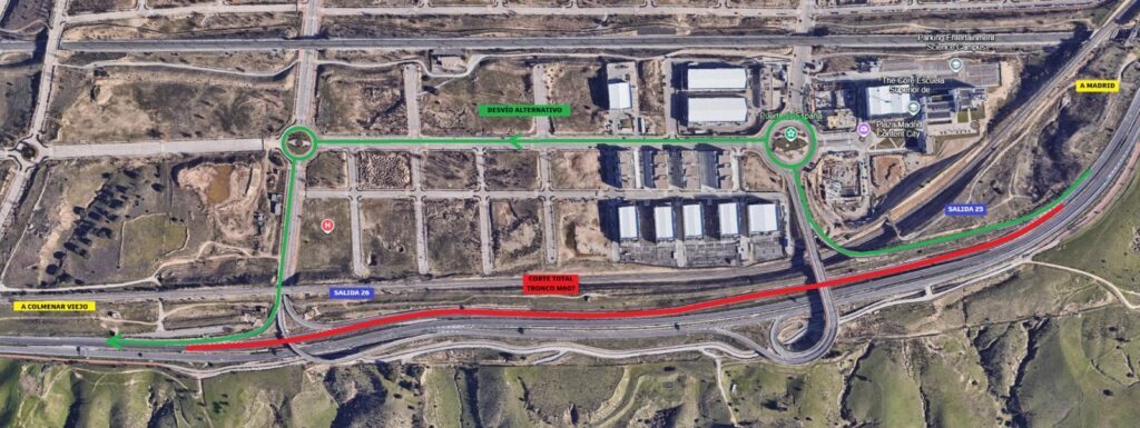 Durante la noche del lunes 20, entre las 22:00 y las 05:30, la M‑607 permanecerá cortada por completo debido a los trabajos de asfaltado de la capa intermedia en el tramo comprendido entre los puntos kilométricos 25+500 y 26+900, en sentido creciente. Se ha establecido un itinerario alternativo por la salida 25 con reincorporación a la M-607 por la salida 26.