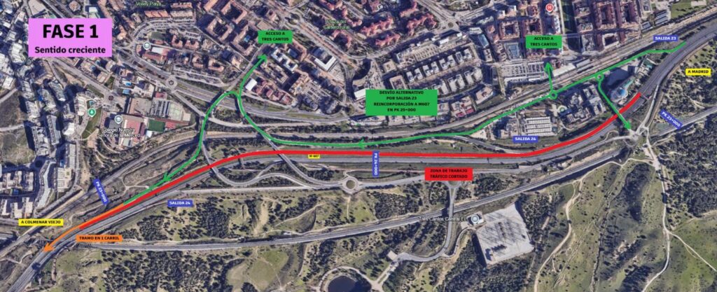 Las obras previstas se enmarcan en el proyecto de ampliación a tercer carril de la M‑607, una actuación considerada prioritaria para mejorar la capacidad de la vía y reforzar la seguridad en uno de los accesos más utilizados por los vecinos de Tres Cantos. En fases anteriores ya se han ejecutado trabajos de ensanche, adecuación de enlaces y diversas intervenciones previas que permiten abordar ahora la etapa final de asfaltado.