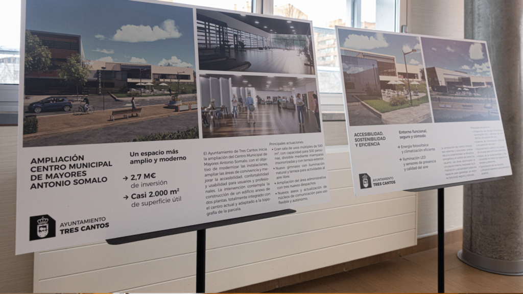 El Ayuntamiento de Tres Cantos ha presentado esta semana el proyecto de obras de ampliación del Centro Municipal de Mayores Antonio Somalo, que contará con una inversión estimada en 2,7 millones de euros. Esta actuación estratégica posibilitará la ampliación del centro, la modernización de las actuales instalaciones, la reforma de todas las áreas de convivencia, así como la mejora de la confortabilidad, accesibilidad y usabilidad del edificio para usuarios y profesionales.