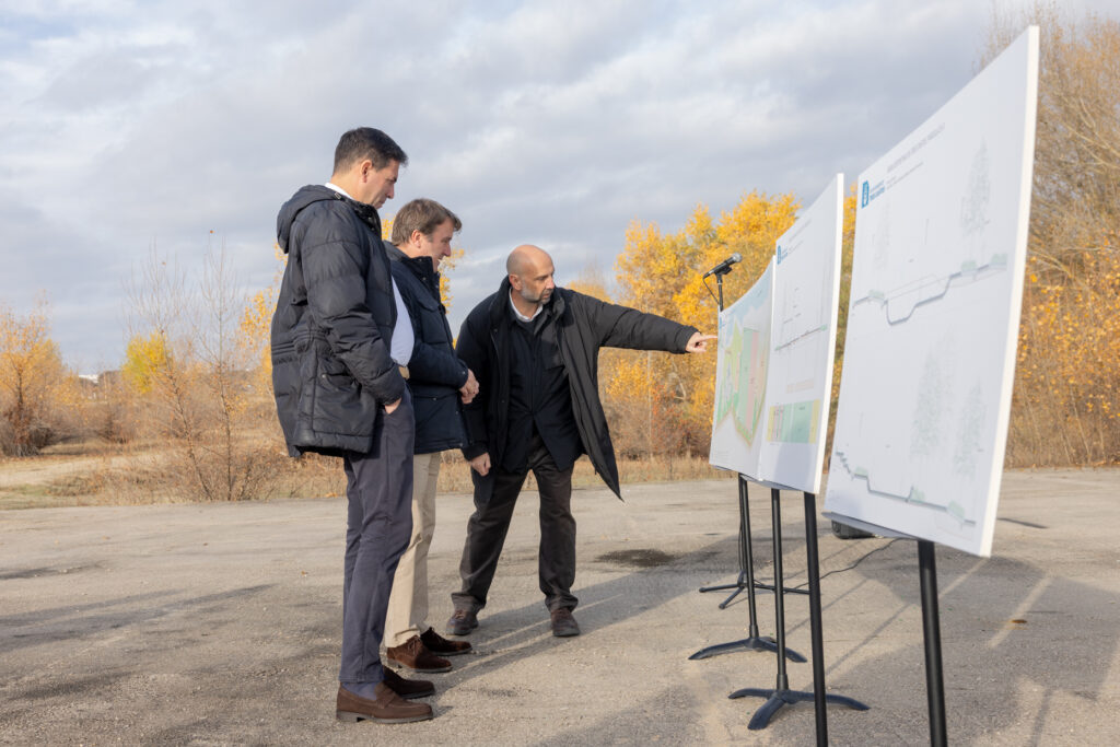 El alcalde, Jesús Moreno, acompañado por el concejal de Presidencia, Javier Juárez, así como por el concejal de Servicios Públicos, Pedro Fernández, y el concejal de Deportes, Eduardo Lorca, ha visitado el espacio donde se emplazarán estas nuevas instalaciones, cuya construcción supondrá un nuevo pulmón verde y deportivo en la zona norte de la ciudad.